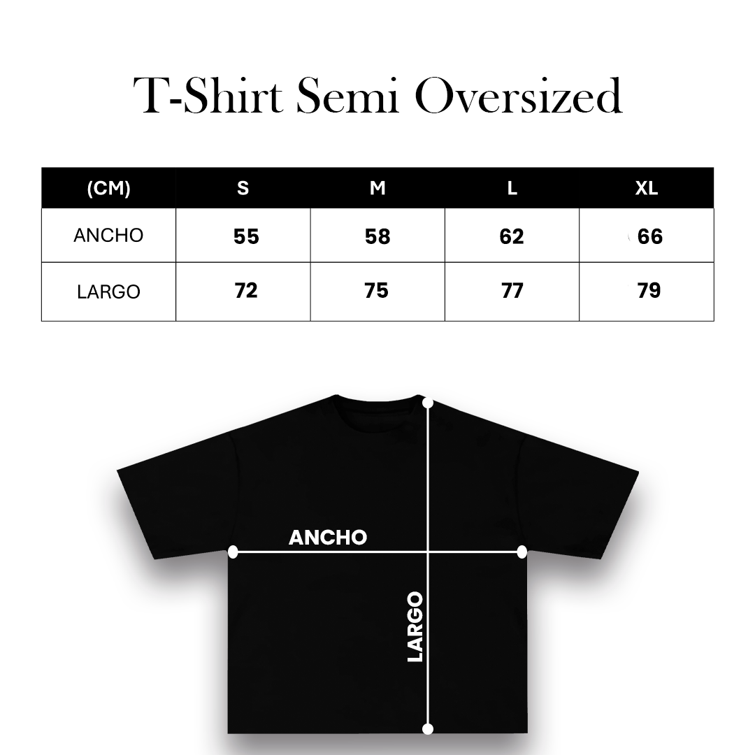 ESCOGE LA TALLA QUE REGULARMENTE ESCOGES EN OTRAS MARCAS (CONSIDERA QUE ES FIT SEMIOVERSIZE)